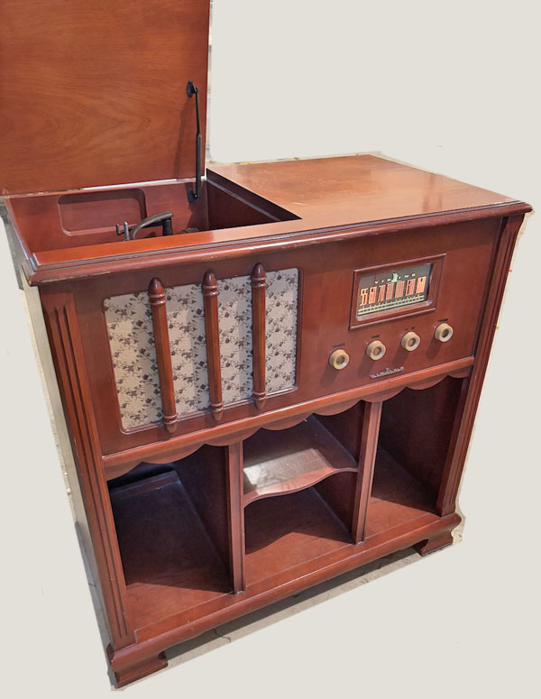 The Webster-Chicago 114-31 turntable had some issues: Arm rest was detached, cartridge mount was loose, speed change label loose, rubber mounts for the tone-arm and motor were all badly deteriorated.